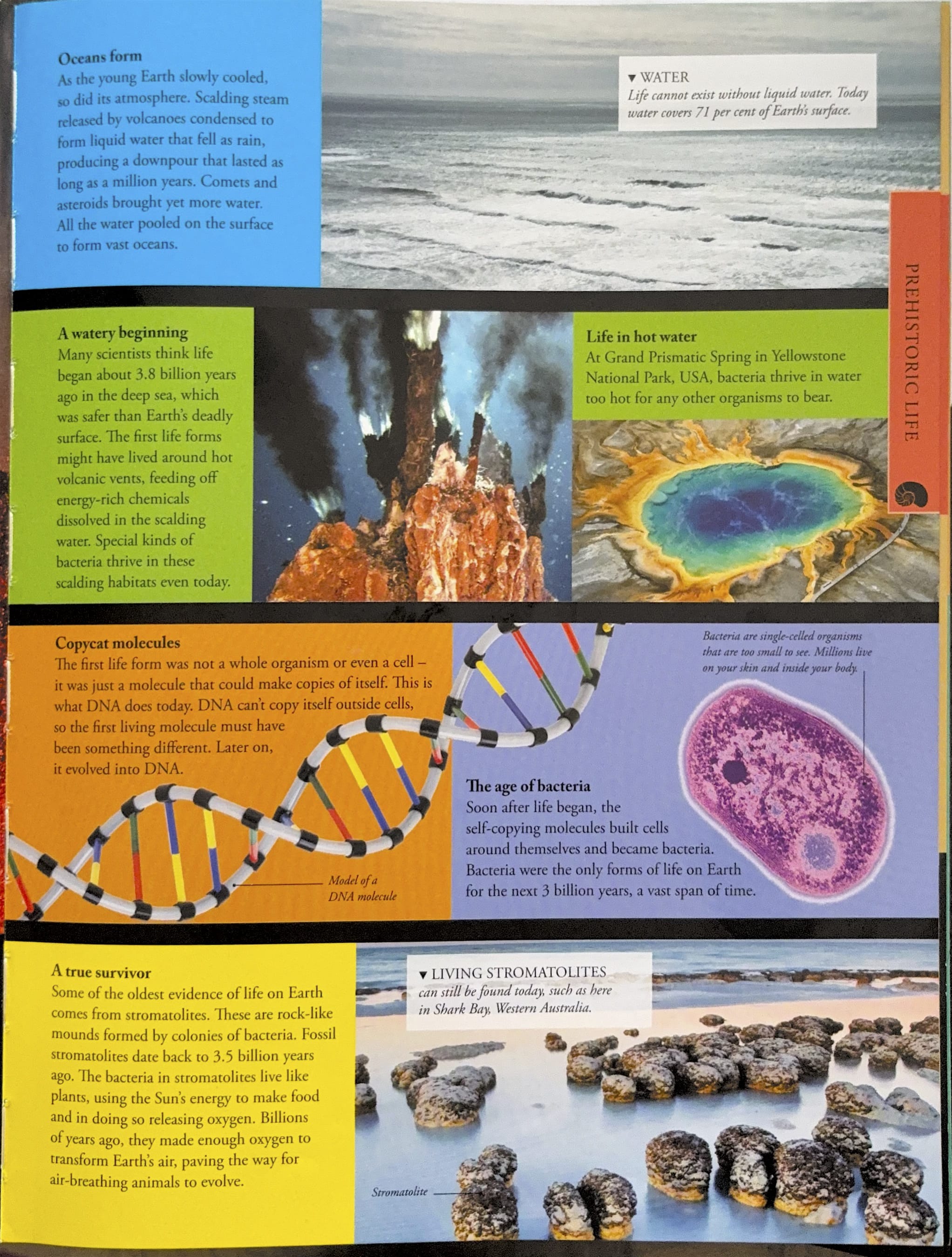 Next we learnt that life began with molecules that could replicate themselves. These self-copying molecules built cells and became bacteria.